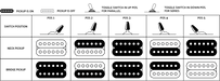 | Pickup Switching | 5-Position Blade: Position 1. Bridge Pickup, Position 2. Both Outer Coils, Position 3. Bridge and Neck Pickup, Position 4. Both Inside Coils, Position 5. Neck Pickup |